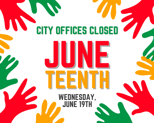City offices closed on Wednesday, June 19 in observance of the Juneteenth holiday