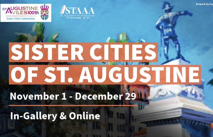 St. Augustine Sister Cities Exhibit will be displayed at the St. Augustine Art Association and online from November 1st through December 29th with the gallery closing November 28th and December 23rd through 26th for the holidays. For information and exhibit updates, visit here. The exhibit is sponsored in part by grants from the St. Johns County Tourist Development Council, the St. Johns County Cultural Council, the Community Foundation of Northeast Florida, and the Benjamin & Jean Troemel Arts Foundation.