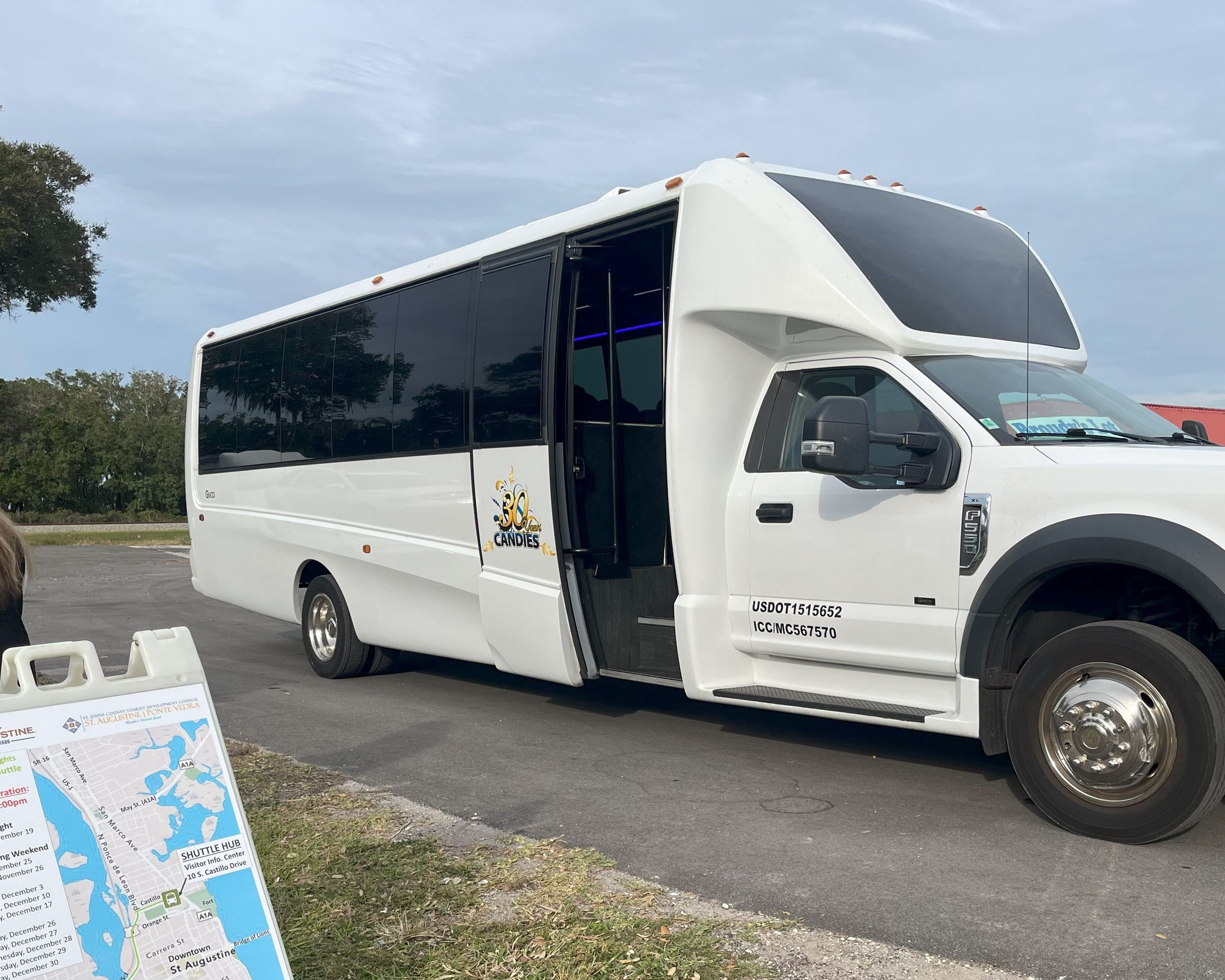 The Free Park and Ride Shuttle is made possible by the City of St. Augustine with the cooperation of the St. Johns County Administration and funding support from the St. Johns County Tourist Development Council.  The special Anastasia Island shuttle on Light-Up! Night is made possible with the support of Historic Tours of America.