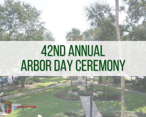 The City of St. Augustine’s 42nd Annual Arbor Day Ceremony will take place at 10:00am on Friday, January 17, 2025, in the Plaza de la Constitución, located in the heart of the Downtown Historic District.