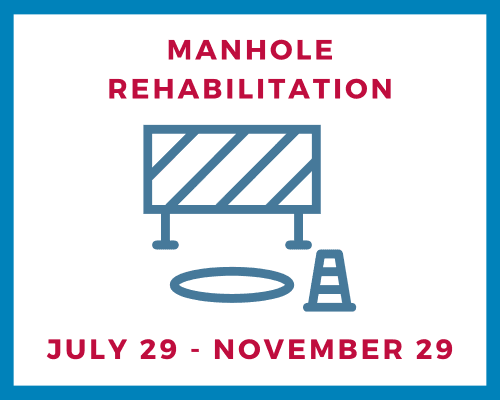 Starting on Monday, July 29 and continuing through Friday, November 29, manhole rehabilitation of the City’s sanitary sewer system will take place throughout the City and County.