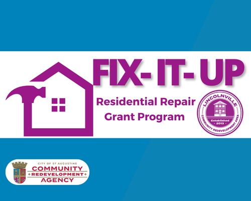 The City of St. Augustine Community Redevelopment Agency (CRA) will host a public workshop for the Lincolnville CRA Fix It Up Residential Repair Grant Program on Wednesday, March 19, 2025, from 5:30pm to 7:30pm at the Willie Galimore Community Center, located at 399 Riberia Street. The workshop will provide information on the most recent updates to the grant program and its benefits for Lincolnville’s long-term residents.
